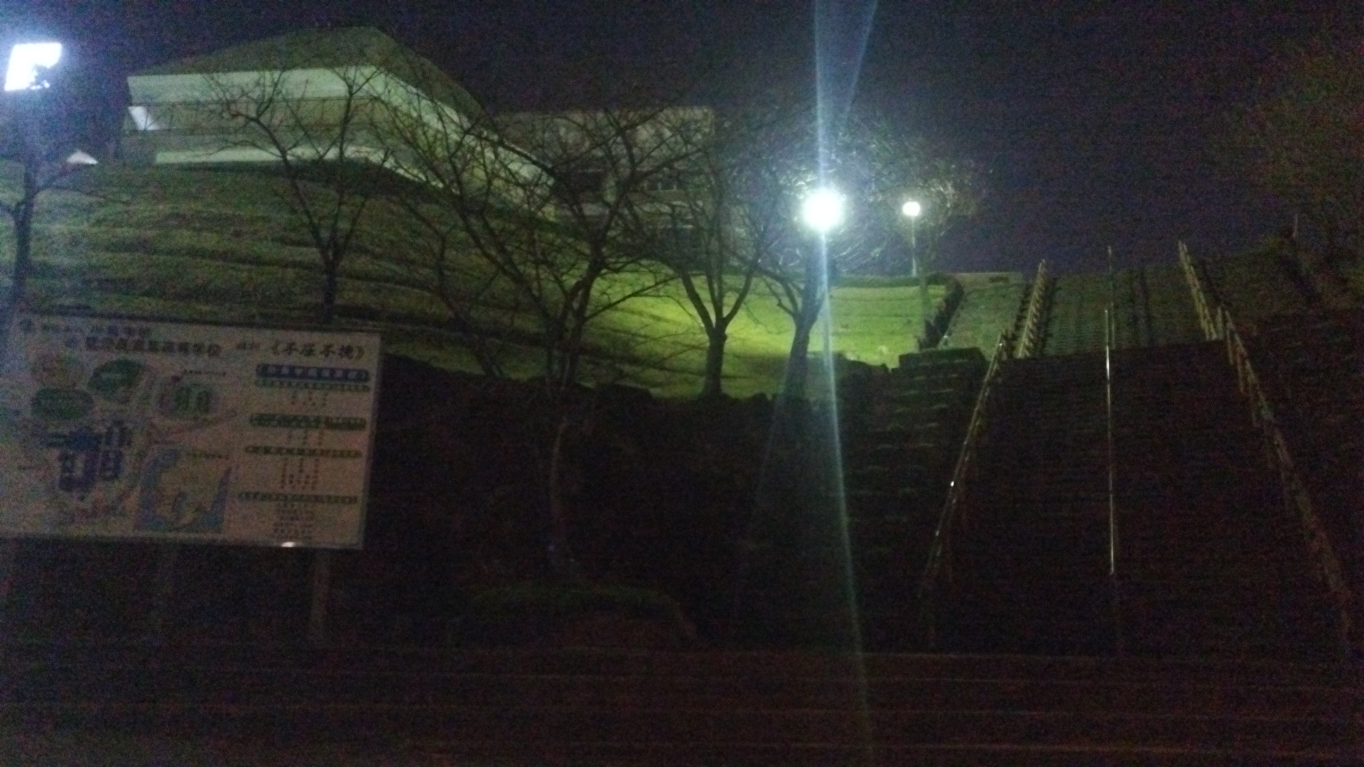 もうあたりは真っ暗で、先へ進むと「鹿実」と光る看板が視界の上の方にぼうっと浮かび上がってきました。これが高校野球などで有名な鹿児島実業高等学校です。敷地は広大なようで入口も広く、敷地内の地図も掲げられていて、大きな寺社の入口を思い起こしました。住所は五ケ別府町(ごかべっぷちょう)です。写真を撮っていると夜にもかかわらず自転車に乗った男子が出てきました。遅くまで部活をしていたのでしょうか。こんなところへ普通の自転車で通学するのは大変だと思います。